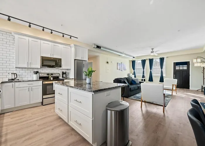 A opção de auto-atendimento incluem cozinha totalmente equipada com forno e máquina de lavar loiça. O Upscale King Bed Suite With Full Workspace And Free Parking está a uma distância aproximada de 5 minutos a pé da paragem Center Avenue.